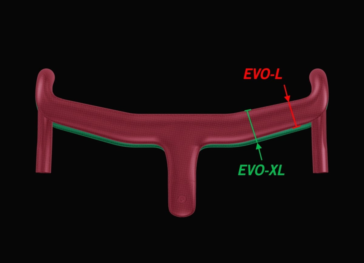 Zwiększona ergonomia kokpitu 5D EVO obejmuje dodatkowy rozmiar (L-XL), dostosowuje on szerokość chwytu części środkowej, aby każdy użytkownik mógł czuć się na rowerze doskonale.