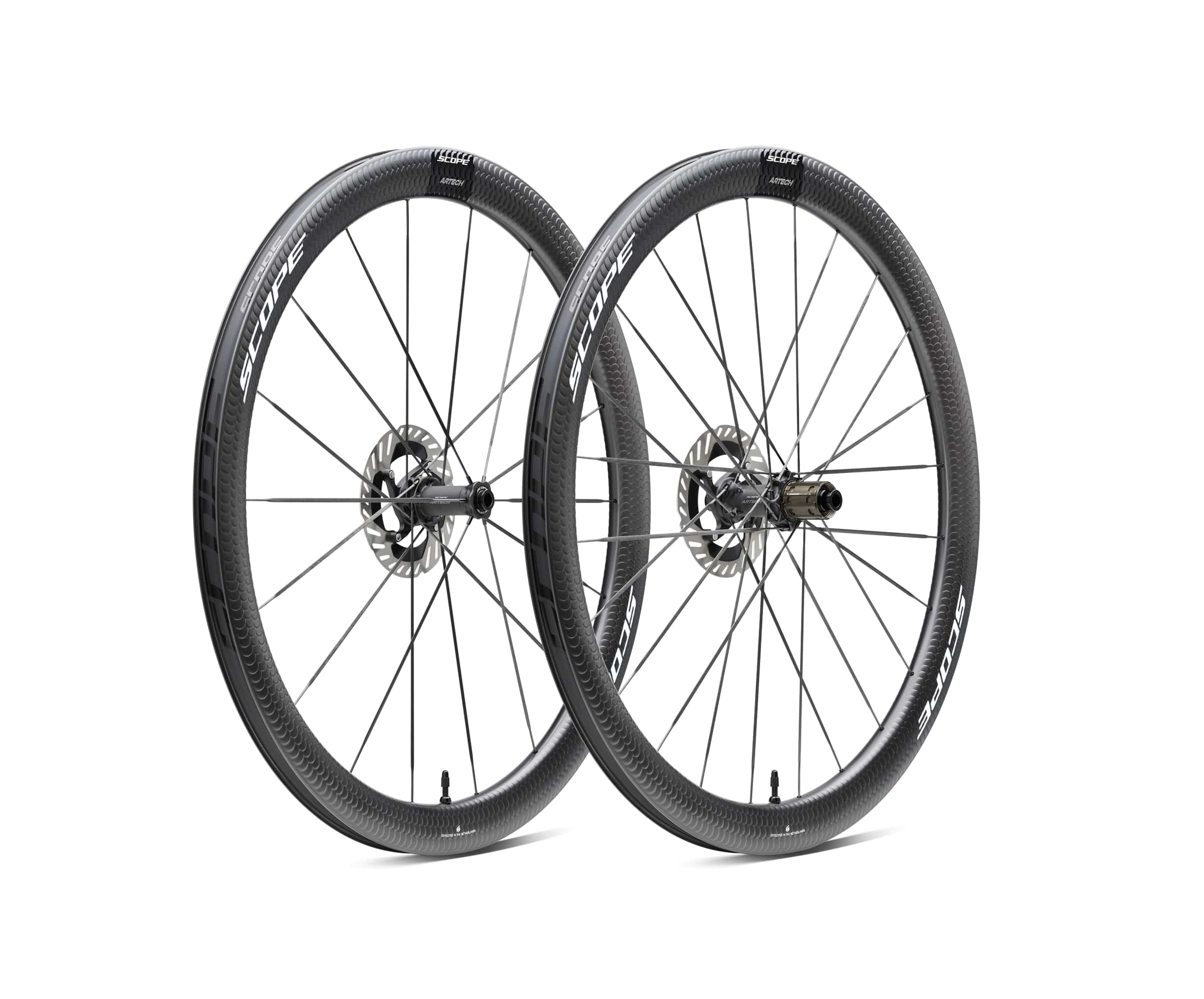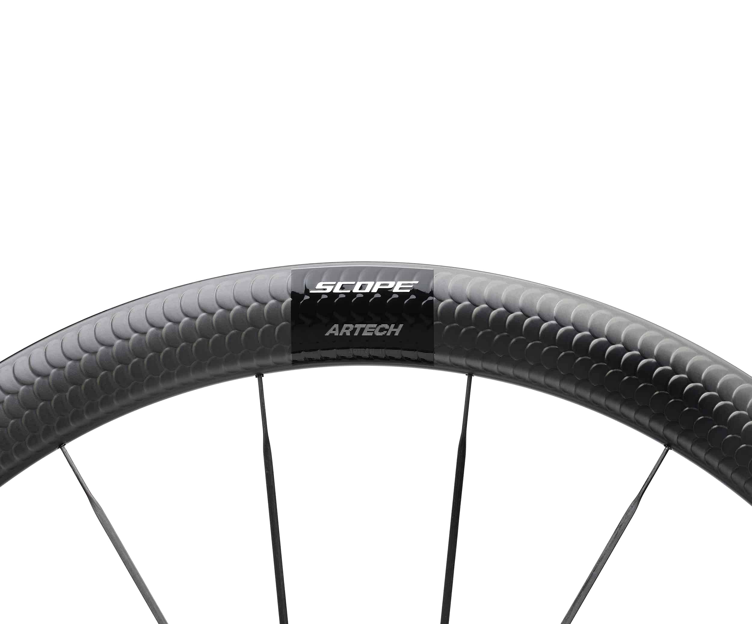 Seria Artech reprezentuje najbardziej zaawansowane technologie Scope Cycling, opracowane z myślą o czystych osiągach. W modelu Artech 4 zastosowano rozwiązania inspirowane naturą i nowoczesną inżynierią, takie jak obręcze opracowane z użyciem algorytmów aerodynamicznych, powierzchnię Aeroscales stabilizującą przepływ powietrza, ultralekkie piasty drukowane w 3D oraz karbonowe szprychy Carbonlite Aerospoke.