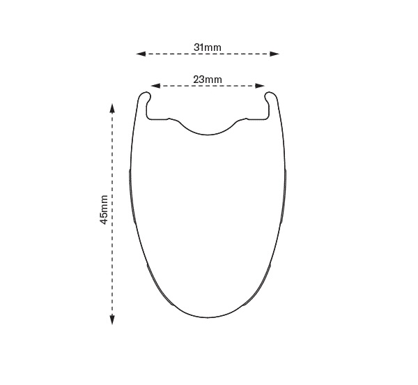 - Wysokość obręczy: 45 mm przód / 45 mm tył.