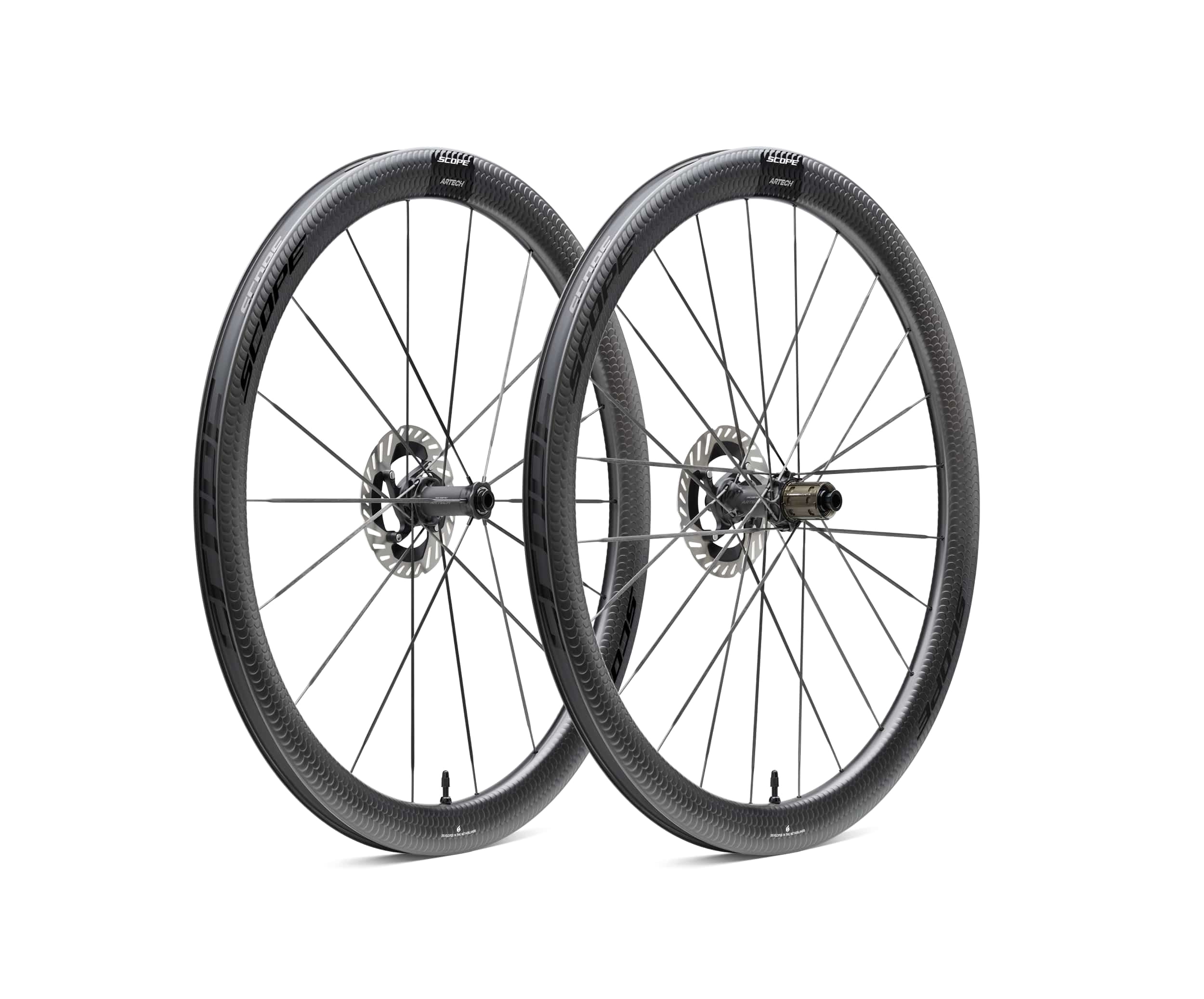 Seria Artech reprezentuje najbardziej zaawansowane technologie Scope Cycling, opracowane z myślą o czystych osiągach. W modelu Artech 4 zastosowano rozwiązania inspirowane naturą i nowoczesną inżynierią, takie jak obręcze opracowane z użyciem algorytmów aerodynamicznych, powierzchnię Aeroscales stabilizującą przepływ powietrza, ultralekkie piasty drukowane w 3D oraz karbonowe szprychy Carbonlite Aerospoke.