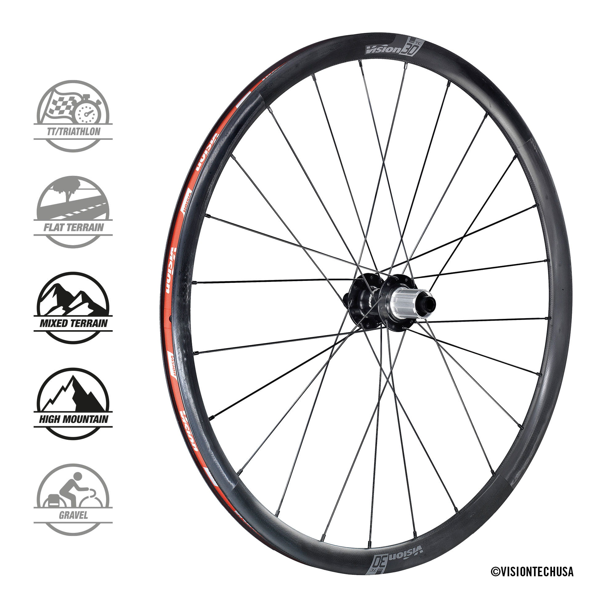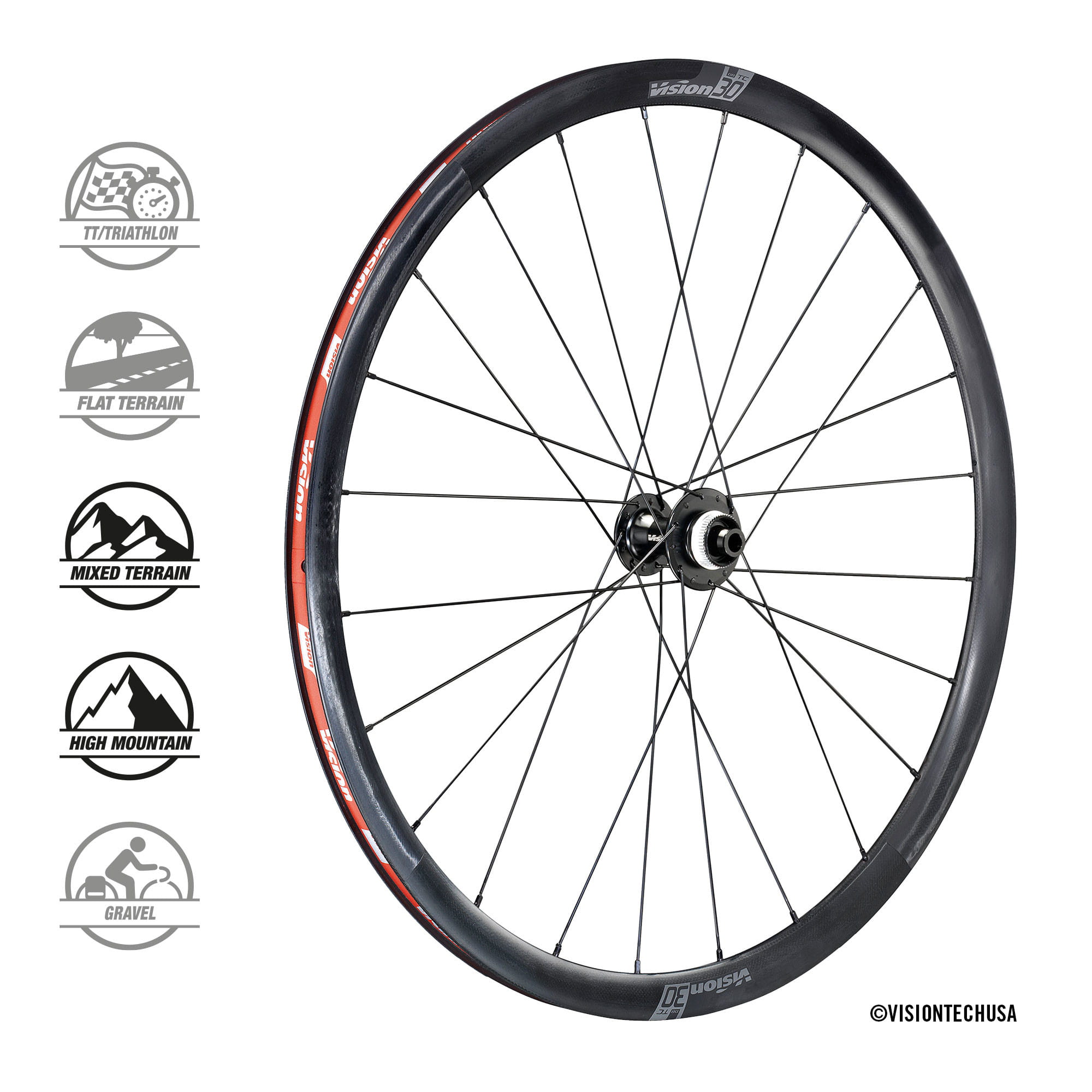 Vision TC 30 to najnowsza seria lekkich i wszechstronnych kół wyścigowych z carbonu, o głębokości obręczy wynoszącej 40mm, dostępna do hamulców tarczowych. Zostały one opracowane na podstawie obszernych testów w tunelu aerodynamicznym oraz podczas jazdy w warunkach drogowych w towarzystwie zawodowych kolarzy z naszych sponsorowanych drużyn. Oferują doskonałe połączenie wydajności, lekkości i konkurencyjnej ceny.