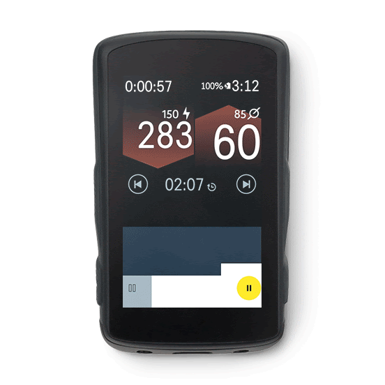 - Kontrola treningu - Odtwarzaj lub pauzuj trening. Pomiń lub powtórz interwał dzięki intuicyjnej kontroli. .