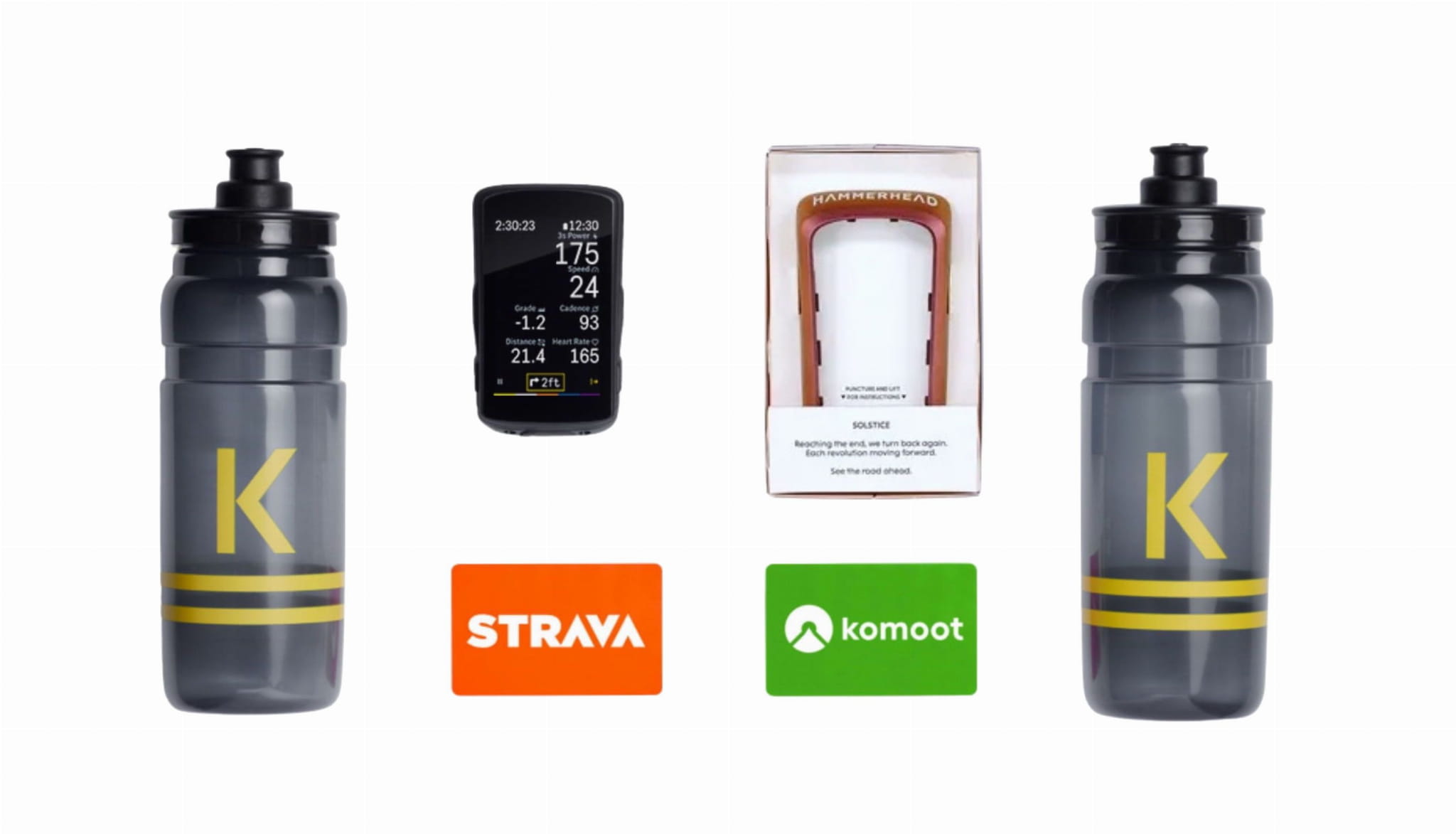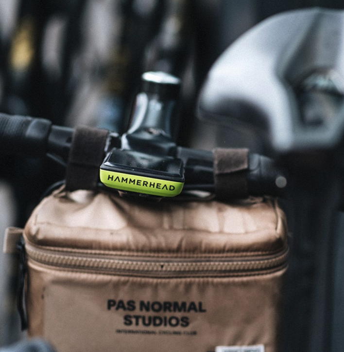 - Uchwyt na kierownicę - Nowy, stworzony od podstaw przez Hammerhead i opatentowany. Bardziej niezawodny, łatwy w użyciu i aerodynamiczny od obecnie istniejących rozwiązań. Dzięki większej powierzchni styku między licznikiem, a uchwytem połączenie jest mocniejsze i stabilniejsze. Kompatybilny z uchwytem Garmin przy zastosowaniu dołączonego adaptera.
