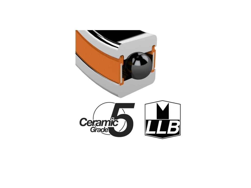 Łożysko skośne, ceramiczno-hybrydowe,12x21x5 mm, ABEC-5, z bieżniami ze stali chromowej 52100, ceramicznymi kulkami klasy 5, uszczelkami LLB i 90% wypełnieniem wysokociśnieniowym i wodoodpornym smarem Mobilux NGLI 2.