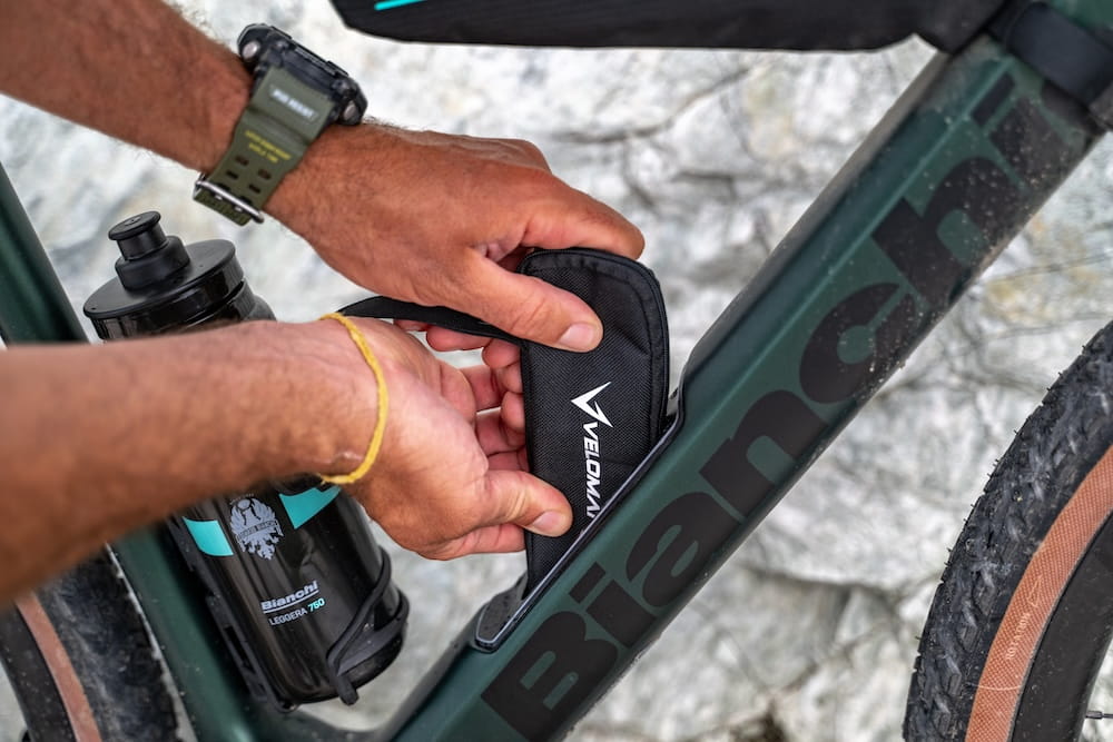 - Ochronna saszetka na narzędzia: dedykowana do IFS saszetka Velomann porządkuje narzędzia i chroni wnętrze schowka przed obiciami; mieści multitool, nabój CO2 z zaworem i dwie łyżki do opon — komplet dopasowany do IFS.