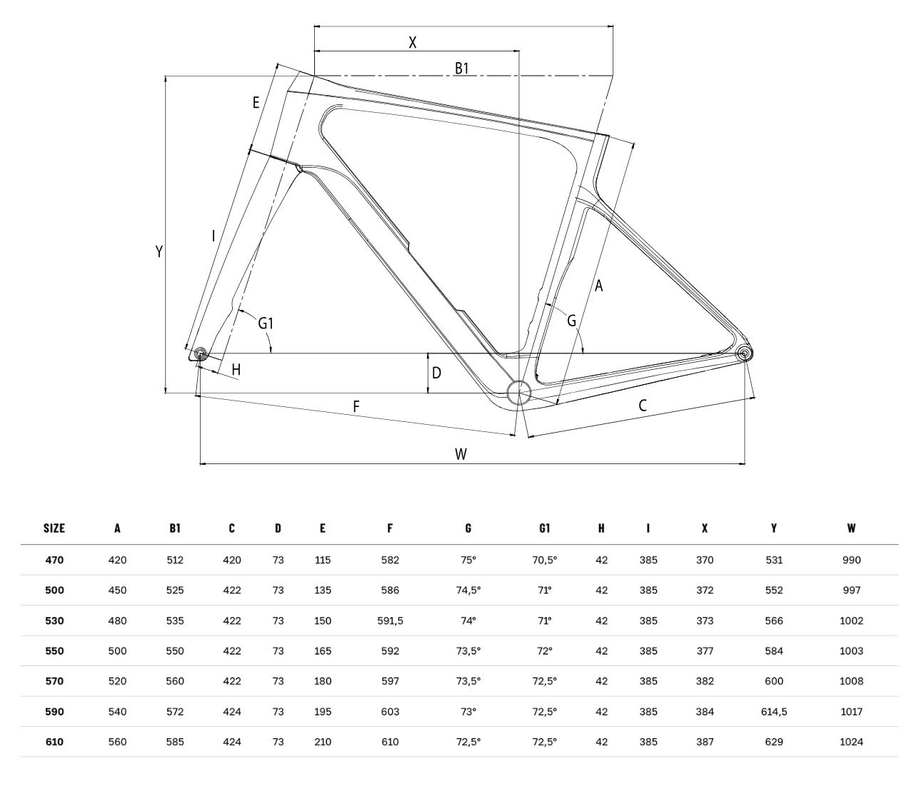 - Prześwit na opony: ETRTO 622-40 (rozmiary ramy: 47-50-53-55-57-59-61).