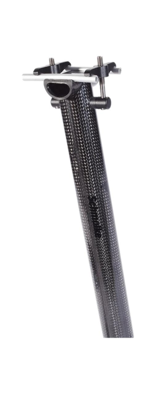 Jarzmo chwyta pręty siodełka w 4 punktach a dzięki lekko zaokrąglonym aluminiowym elementom zaciskowym i dużej powierzchni styku carbonowej półskorupy, nawet wrażliwe karbonowe stelaże nie są narażone na nadmierne naprężenia. Mocowanie siodełka jest kompatybilne zarówno z okrągłymi jak i owalnymi prętami, jednak ich szerokość nie może przekraczać 8 mm, a wysokość 12 mm. Tytanowe śruby Ti6Al4V o średnicy 5 mm zostały zaprojektowane jako śruby rozporowe, aby bez uszkodzeń wytrzymać naprężenia jazdy MTB. Wewnętrzna średnica sztycy jest kompatybilna z akumulatorami Di2.