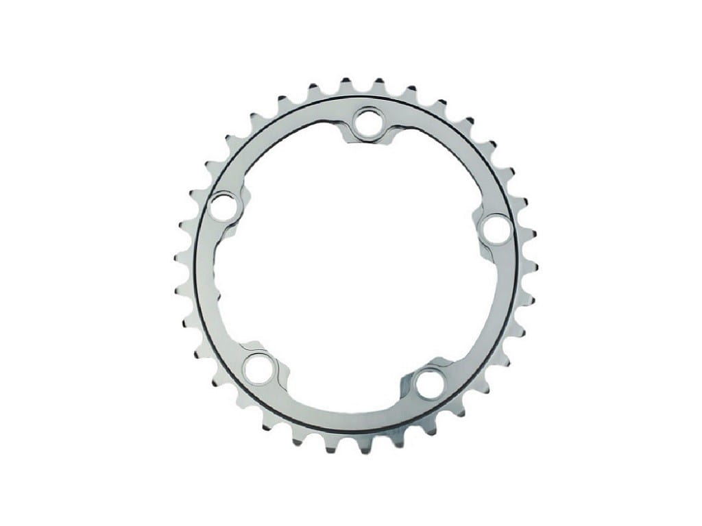 - Najlepiej współpracujące z przednią przerzutka owalne zębatki na rynku – wewnątrz zębatki umieszczono sześć odpowiednio ukształtowanych prowadnic które ułatwią przeniesienie łańcucha z mniejszej na większą tarczę