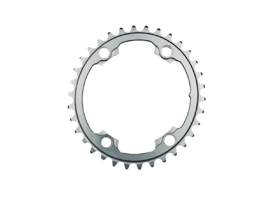 - Najlepiej współpracujące z przednią przerzutka owalne zębatki na rynku – wewnątrz zębatki umieszczono sześć odpowiednio ukształtowanych prowadnic które ułatwią przeniesienie łańcucha z mniejszej na większą tarczę