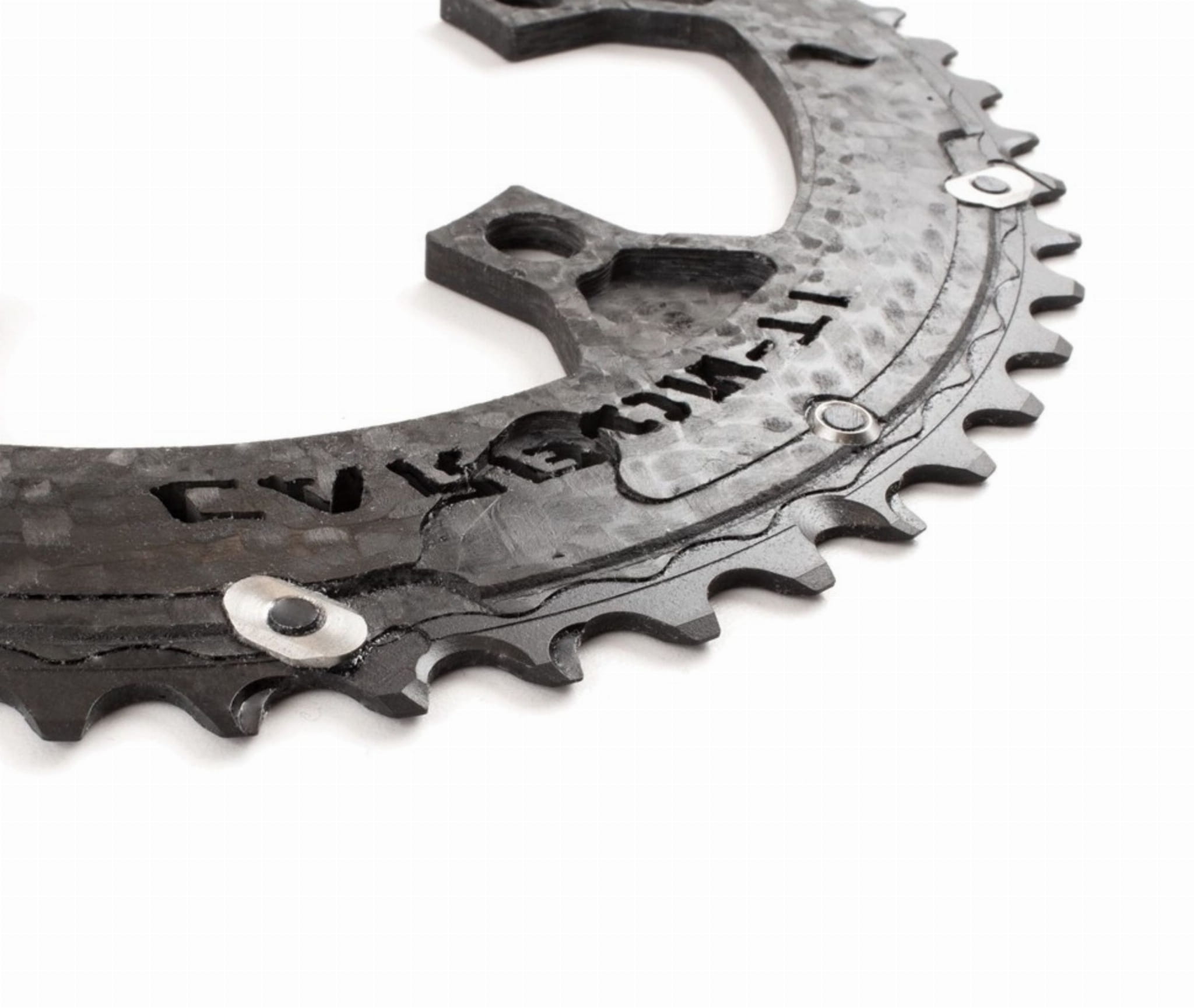 X-CarboRing EVO to najnowsza ewolucja super lekkich zębatek o strukturze kompozytowej ze stopu aluminium i włókna węglowego, przeznaczonych do rowerów szosowych. Zewnętrzne tarcze są wykonane z grubszych płyt kompozytu węglowego, aby uzyskać wyższą sztywność i umożliwić bardziej skomplikowaną obróbkę CNC. Wycięte rampy, wraz z przeprojektowanymi tytanowymi elementami, ułatwiają transfer łańcucha z małej na dużą koronkę, umożliwiając szybką i precyzyjną zmianę biegów w górę i w dół zarówno w napędach z przerzutkami elektronicznymi, jak i mechanicznymi.